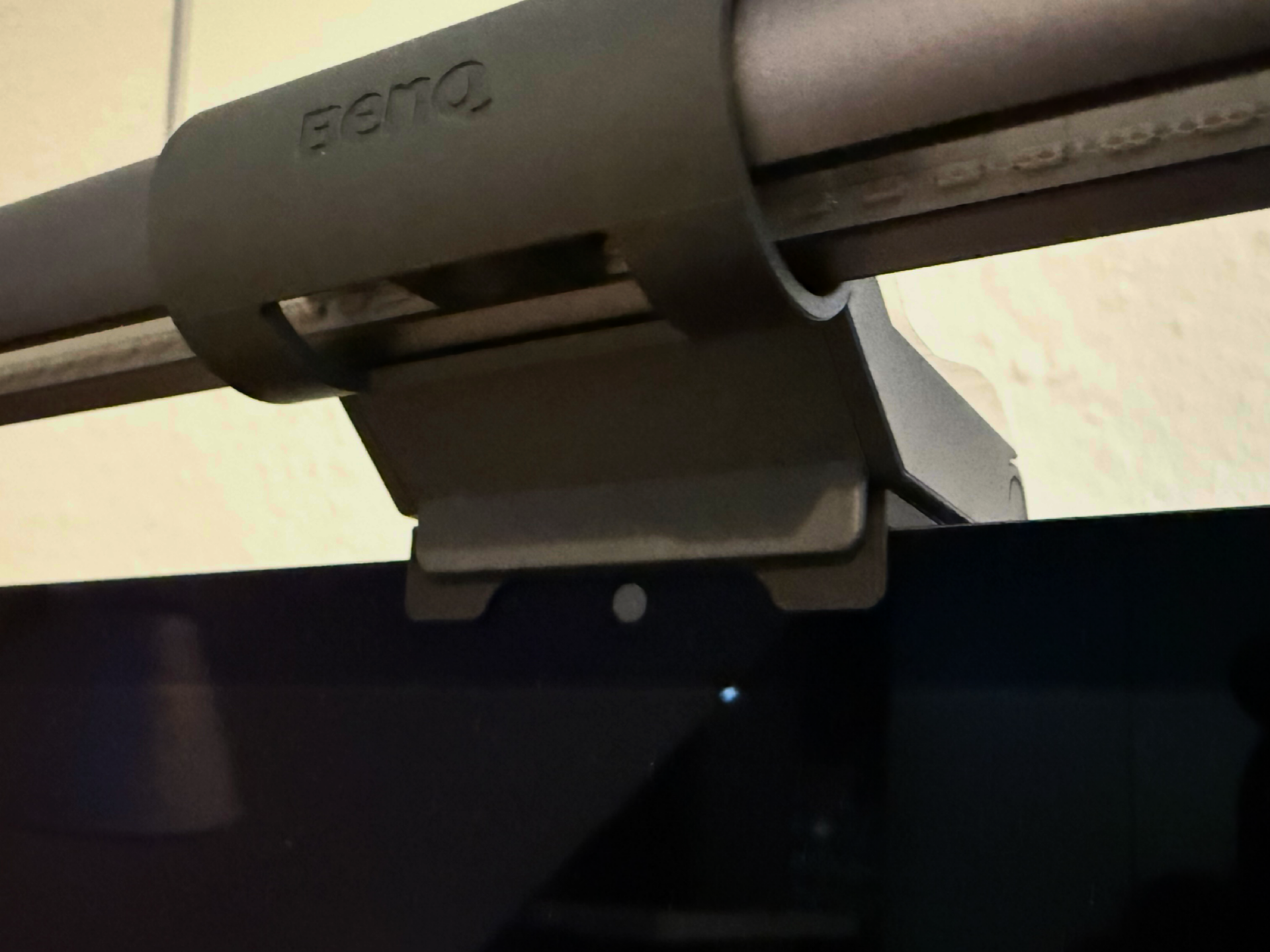 3Dプリンターでスペーサーを印刷することで、この問題を解決しました。一から作成するほどの技術はなかったので、Studio Displayにモニターライトを装着する際に、Webカメラへの鑑賞を回避するオブジェクトを流用しています。